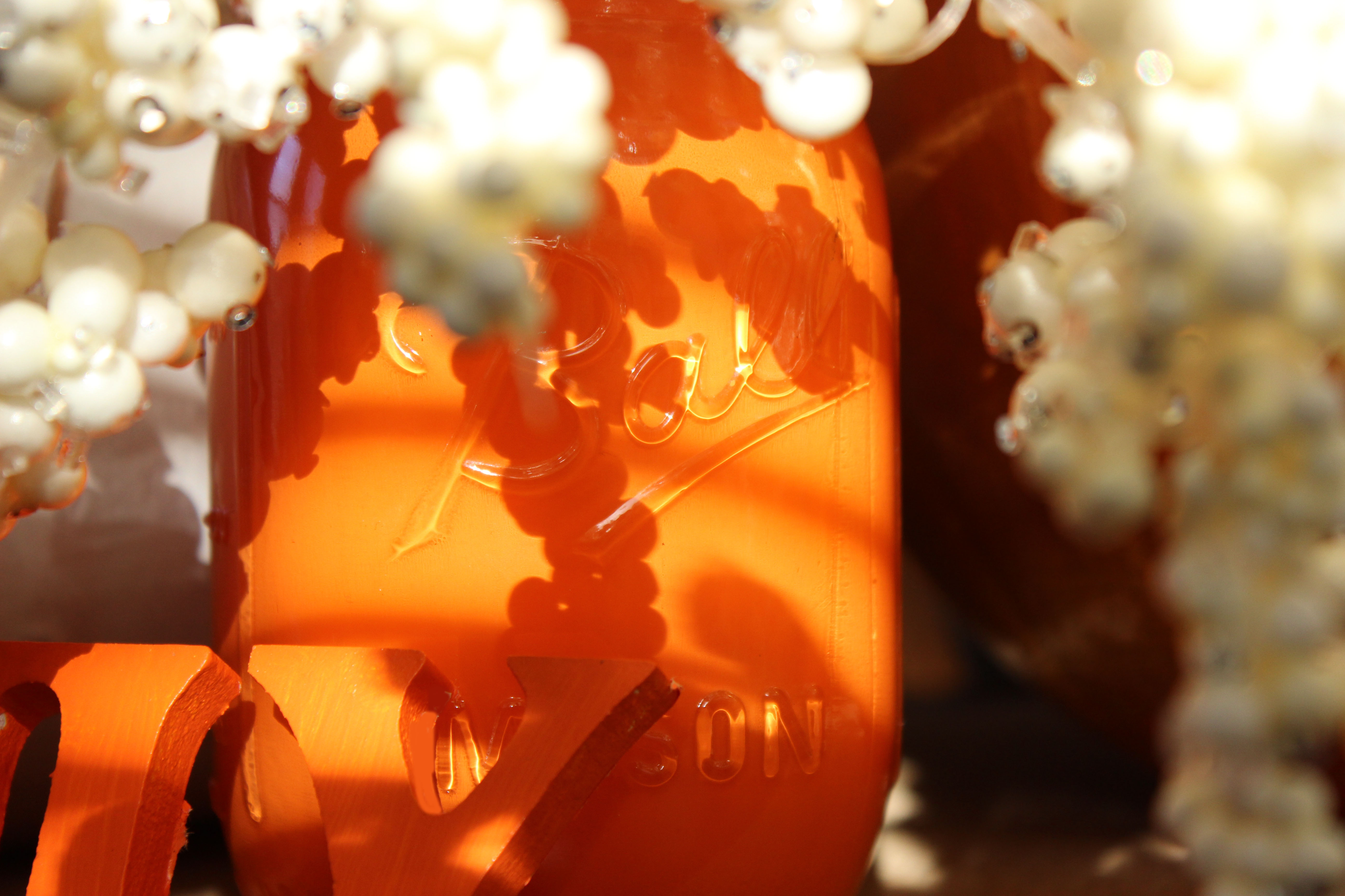 I spray painted the white pumpkin in a satin white. After it dried I wrote “thanks” on the pumpkin, which believe it or not was the hardest part of the centerpiece because of the cursive and trying not to look like a child wrote it. I painted the Mason jar (for some reason was most excited about that bc it looks like it came that way and was ridiculously easy) and painted the FAMILY letters with the same orange. I painted the big pumpkin with 2 layers of gold.
